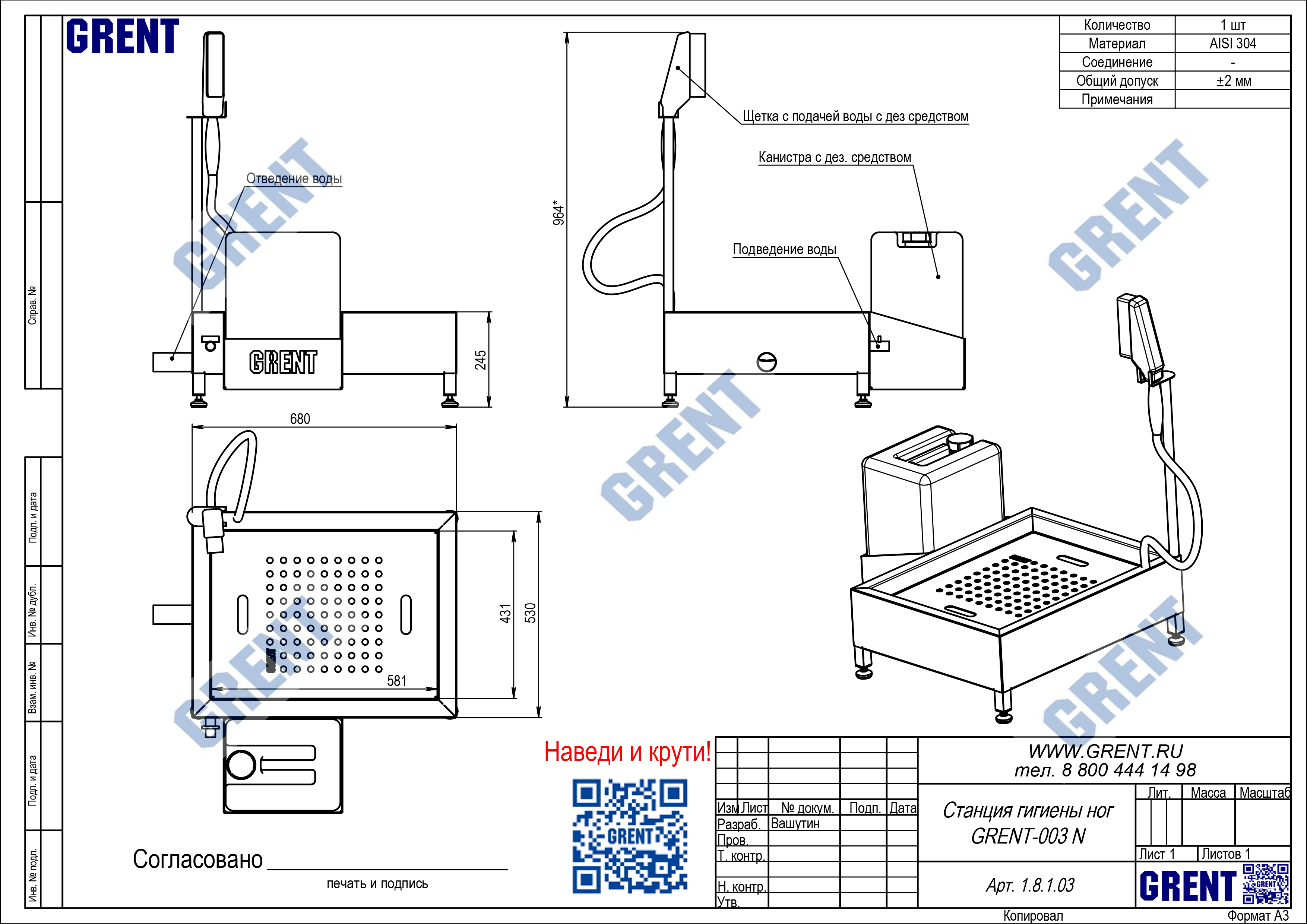 Станция гигиены обуви GRENT-003 N предназначена для дезинфекции подошв обуви персонала перед выходом (входом) из чистой зоны.
