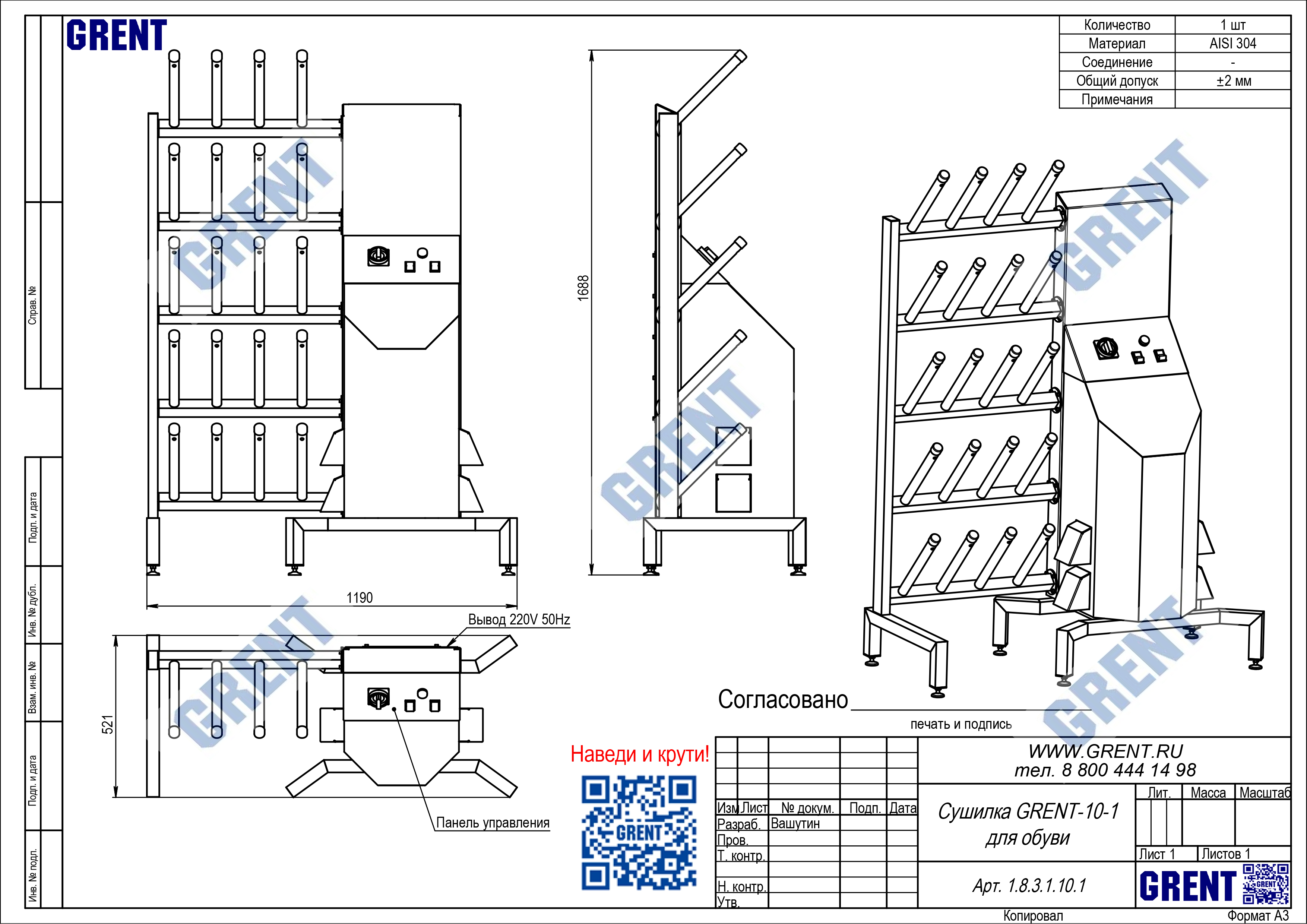 • материал — нержавеющая сталь AISI 304