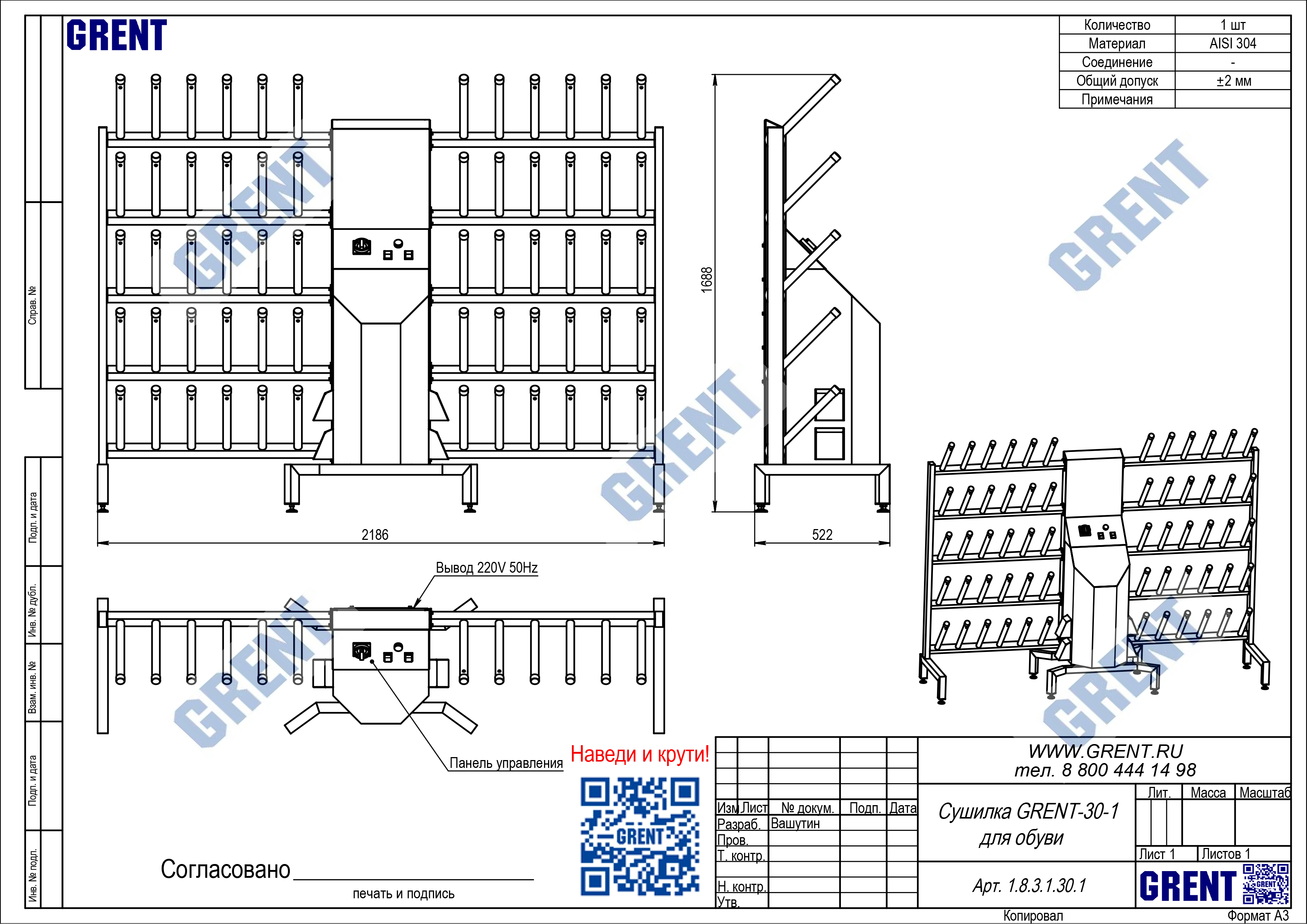• материал — нержавеющая сталь AISI 304